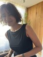 Aラインのボブにふわっとパーマでボリュームを出したスタイル。カジュアル+モードな雰囲気になるようシルエットやウェーブ感を調整しています。