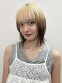 ボブレイヤールーツカラー金髪ボブ前髪ありウルフボブ