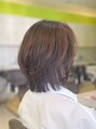 レイヤーボブ。アウトラインは真っ直ぐにカット。顔まわりからトップにかけてレイヤーを入れて後ろに流れるようにカットしました。