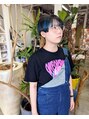 ベースはトーンダウンして表面のブリーチ部分に縦の筋が出るようにホイルワーク!オンカラーは夏にぴったりなブルー♪