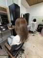 赤みを抑えたベージュカラーにハイライトをプラス。立体感とツヤ感を叶えるナチュラルロングスタイル。