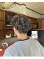 緩めのスパイラルパーマとハイライトで動きのあるスタイルに。
