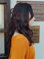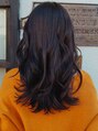 表面に少しレイヤーが入ったロングのパーマスタイルです。ランダムに巻いたパーマで動きが出て、ロングの重たさはなく、雰囲気を柔らかく見せてくれます。パーマはデジタルパーマで日々のお手入れがしやすいスタイルです。