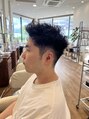 横と後ろは3~6mmのグラデーションで刈り上げトップ部分は短めにカットし全体的にランダムな動きが出るようにピンパーマを用いたスタイルになってます!