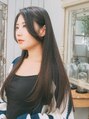 赤みを抑えたブラウンでこれからの秋冬にもってこいのカラーです。前上がりでカットされているので全体を分けて胸前にもってきても綺麗に見えるスタイルです。前髪はやや立ち上げサイドに流しているのでのっぺりとした印象がない綺麗めのスタイルです。
