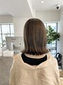 白髪があるお客様です。脱白髪染めカラーをしております。赤みを消した明るめカラーで白髪をぼかしました♪ワンレン外はねボブ〔白髪ぼかし/脱白髪染め/ハイライト〕