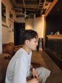 前下がりのショートヘアーにニュアンスパーマをかけて雰囲気マシマシで!手でかきあげた時に落ちてくる髪の毛が雰囲気でるように!オフの日はオイルで雑にセットしても決まるように!
