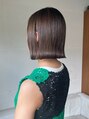 外ハネボブ×透明感カラー. ベースは顎下ラインで外に跳ねるボブカットです◎シンプルでまとまりが良くいろんなファッションとも相性が良いスタイルです!カラーは赤みが少なく透明があるグレージュカラー◎ お気軽にご相談ください!【中目黒/代官山/ボブ】