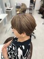 アクティブシニアのお客様にオススメのツヤ感ショートです。トリートメントをすると、ぐっとショートの質感が上がります!リタッチなので繰り返してもローダメージ。上品なベージュへ。