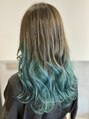 グラデーションターコイズショートボブミディアムロング10代/ホットペッパービューティー