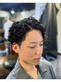 柔らかなウェーブと濡れ感を活かしたセンターパートスタイル。タイトめに収めたサイドと、絶妙なツイストパーマの動きが色気と清潔感を両立させています。オフの日はラフに、オンの日はタイトに、とアレンジの幅も広く、好印象間違いなしの万能スタイルです。