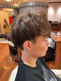 中を刈り込んだツーブロック。スタイルのもちがいいです。ハチが張っている方や縮毛の方、硬い髪の方にもおすすめです。トップはふんわり動きを出したマッシュヘアでお手入れも楽々。