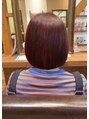 深みのあるレッドカラーで、艶感たっぷりのシンプルボブ。肌映りが良く透明感も引き立つので、大人っぽくも可愛らしくも楽しめます♪オイルで仕上げれば、よりまとまりとツヤが長持ちします。