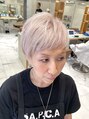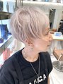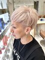 アシンメトリーのショートヘアにホワイトゴールドで柔らかい雰囲気に。内側の髪が多い方は少し甘めに刈り上げると欧米人のように首が長く見えますよ!スタイリングはオイルジェリーで艶を出すのがおすすめです!