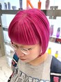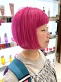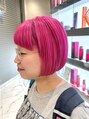 ヴィヴィッドなピンクが印象的なシンプルなボブスタイル。ケアブリーチで優しくリフトアップしてアルカリのピンクと塩基のピンクをミックス。アルカリが絵の具だとしたら塩基はペンキの様な質感。特にアリミノのヴィヴィッドプラスは発色が凄く良いです!