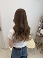 【大人可愛いシークレットハイライト】シークレットハイライトをいれて全体的に明るめのミルクティーベージュにしあげました♪ナチュラルなスタイルに透明感をだしてくれるシークレットハイライト大人女性に人気のメニューです
