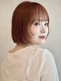 コーラルオレンジ 顔周りレイヤー ラウンドバング 切りっぱなし/ホットペッパービューティー