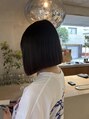 パッツリ重ための肩上ボブです☆アウトラインに重たさがあるのでくくったりしても落ちてくる髪の毛が少ないです♪