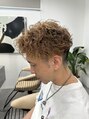 波巻きをベースで巻いているのでボリュームをしっかり抑えつつツイストで強めのパーマ感と細かいカールを出しているので無造作ヘアに相性がいいです!