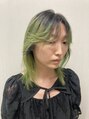 グリーンとブラックのデザインカラーブリーチカラー デザインカラー