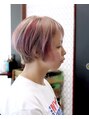 柔らかいベージュをベースに、ピンクのハイライトをランダムに入れて動きと立体感を。丸みを活かしたカットで、フェイスラインをすっきり見せつつ、遊び心のあるカラーが映えるデザイン。甘すぎないピンクで大人の女性にもフィットするカラーです。