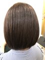 前下がりボブスタイル伸ばしていたお客様ですがどうしてもはねてしまうとのことで毛先を切らせていただき毛先に厚みを出しました。厚みを出すことによりハネにくく伸ばしやすいと思います。全体のラインはゆるやかな前下がりにしました。