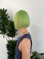 ミントグリーン/ハイライトカラーケアブリーチ/切りっぱなしボブ