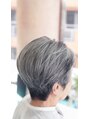 全体の10枚ほどのハイライトブリーチを。その後、イルミナカラーのマットとヌードのミックスオンカラー。カッとは衿上のノーマルボブ。ダブルカラー、インナーカラーも効果的。 酸熱ストレート&酸熱トリートメントで髪質改善もありかも!