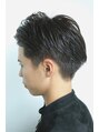 サイドとネープを刈り上げたショートベースにジェルを使ってなでつけたフォーマルなスタイルとなっています。ジェルでウエットにスタイリングしていますので男気あふれる大人の雰囲気をかもしだします。