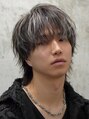 メンズホワイトハイライトカラー透けバングウルフ/ホットペッパービューティー