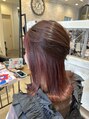 カラーリングでご来店されました。インナーカラーにラズベリーとブラウンをMIXしてベースも暖色系でまとめました艶感が出やすいカラーリングにスタイリングは外ハネに仕上げました。