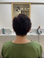 癖毛を活かしたショートスタイル。カラーは艶感を表現するピンクバイオレットで。色抜け後も綺麗と好評です。仕上げ方は、mmのジェルとリンクバームで潤いある艶感を出すのがポイント。