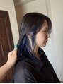 インナーをしっかりブリーチして鮮やか且つ、派手過ぎず馴染みの良いブルーにワンブリーチからできるカラーです