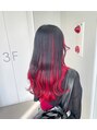 派手髪ツートン/ブルーブラック/ハイトーンレッド