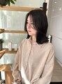 顔まわり中心にレイヤーをしっかりいれたセミロングスタイルです♪カラーは明るめのベージュでより軽やかに♪