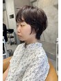 毛先にゆるく残ったパーマを活かした柔らかい質感のショートヘアです。