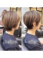 【ブックマークをする】でカウンセリング時にご提示ください。ショートヘアのお客様の約9割からご指名をいただいております。髪質や輪郭に合わせた丁寧なカットで、ご自宅でも扱いやすく品のあるスタイルに。大人女性から長くご支持をいただいております。