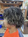 サイドだけをツーブロックにカットしてからの緩めのスパイラルパーマとなります。前回メッシュカラーをしていたので、今回のパーマでスタイリッシュに仕上がりました!