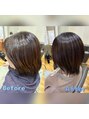癖のボリュームダウンパーマ!!ストレートパーマでまとまりのあるヘアスタイルに。日常生活での髪のお手入れ時間短縮できます!コテやアイロンでのセットも幅も広がります★ダメージケアでは保湿のためオイルやトリートメントがおすすめです!