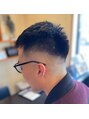 サイドからバックにかけてしっかりと肌が見えるまで刈り上げたスキンフェードスタイル。トップは長さを残し、タイトにまとめることでメリハリのあるシルエットに仕上げました。清潔感と男らしさを兼ね備えた人気のスタイルです