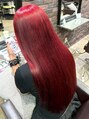 ハイトーンカラー ダークレッド ケアブリーチ ツヤ髪 ロング