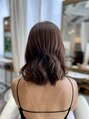 ベージュは、日本人の肌になじみやすく、季節を問わず楽しめる万能カラー★赤みを抑えつつ柔らかさを引き出し、顔色を明るく見せてくれる効果があります♪特に今回のスタイルは、肩にかかるミディアムボブにゆるやかなウェーブをプラス。