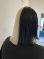 センターで分けた2トーンカラーです左はブリーチで抜きっぱなし 右はブラックの単色で染めてはっきりした明度差を出しました 個性的なカラーもおすすめです