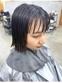 ショート ウルフ 黒髪 ボブ パーマ デザインカラー