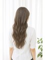 程よくレイヤーを入れたグレージュロング。ツヤ感と柔らかさを兼ね備えた上品スタイル。
