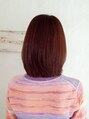 このスタイルはレイヤーボブスタイルになります。毛先は揃っているのですがはちうえからレイヤーが入っているので毛先が重たくなりすぎないようになっています。顔周りにもレイヤーが入っているので丸くかわいらしいいんしょうになります。