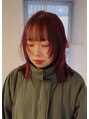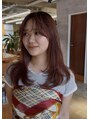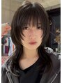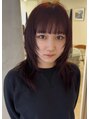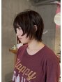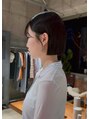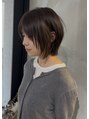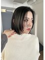 顔周りに動きをつけた切りっぱなしボブ顎上の長さがタイトでかわいい◎ダークブラウンカラー