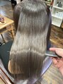 縮毛矯正×切りっぱなしボブ×ベージュ。