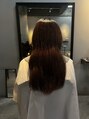 ミディアムパーマ。ロングから肩下でバッサリカットして、カールも大人可愛く細過ぎず太すぎないものでナチュラルなパーマに仕上げました。