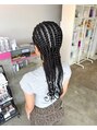 細かめでブラックエクステありのフルコーンロウ!シンプルど直球だからこそ、ヘアアクセがばっちりアクセントになってカッコいいですね♪所要時間は3時間程度~金額は\16000程です。
